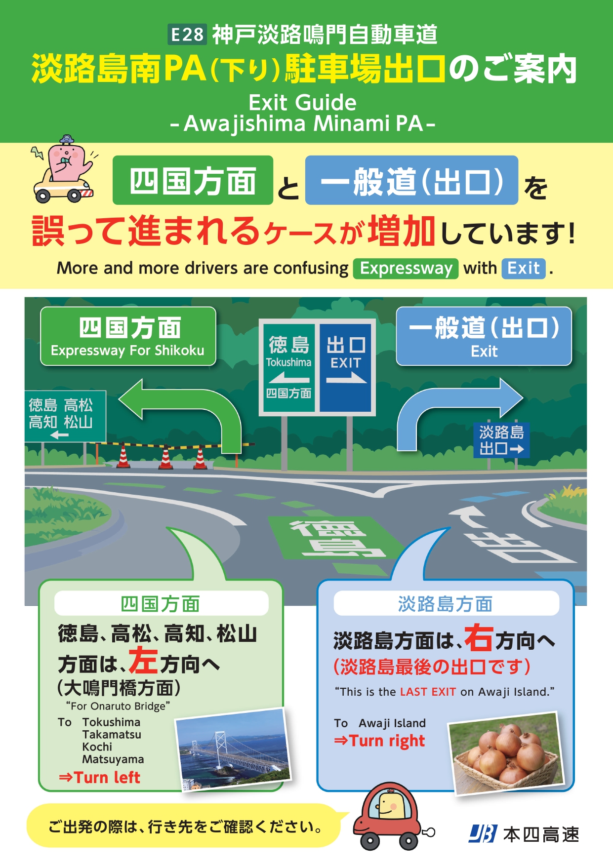四国方面と一般道(出口)を誤って進入されるケースが増加しております。